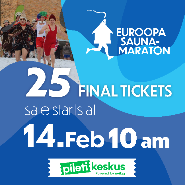 The final round of ticket sales for the XII European Sauna Marathon in south Estonia will go on sale tomorrow February 14 at 10am online at Piletikeskus.