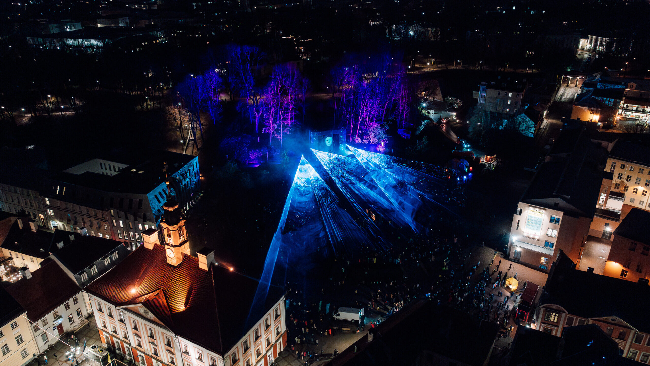 Fotol: kultuuripealinna aastale pandi punkt 30. novembril Tartu 2024 lõpupeoga „Jää ja loo". (Foto: Maanus Kullamaa / Tartu 2024)