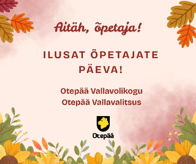 5.oktoobril on õpetajate päev. Paljudes koolides tähistatakse seda aga juba täna. Ilusat õpetajate päeva soovib Otepää Vallavolikogu ja Otepää Vallavalitsus.