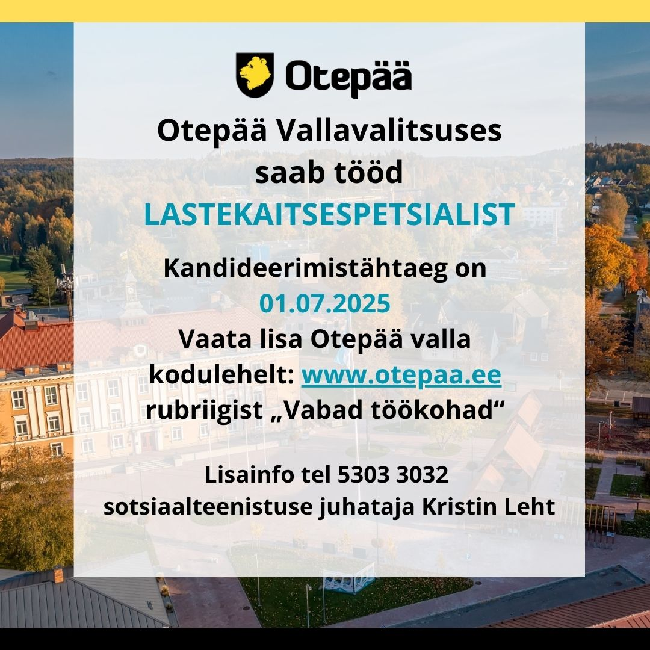 Otepää Vallavalitsus pakub tööd lastekaitsespetsialistile (konkurss lõppenud)