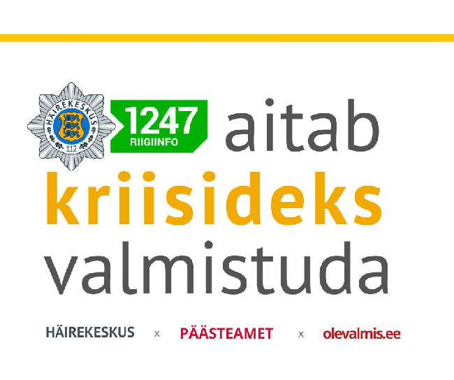 - Päästeamet – Darja Denissova (darja.denissova@paasteamet.ee, tel 5857 5020 , www.rescue.ee ja www.olevalmis.ee)