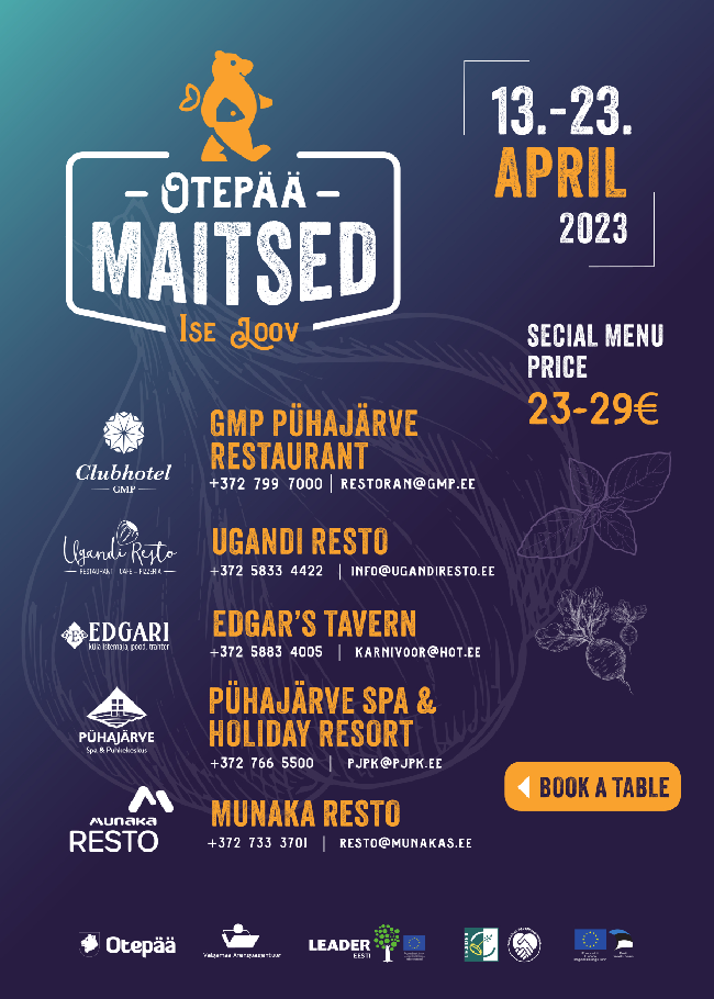 11.- 21. aprillil 2024 toimub Otepää piirkonna toitlustusasutustes taas Otepää Maitsete nädal „IseLoov". Kolmekäigulises menüüs pakub piiritut fantaasialendu kohalik tooraine ning tutvuda saab Otepää toidukohtade erinevate karakteritega. Erimenüü hinnaks on 28-34 eurot.