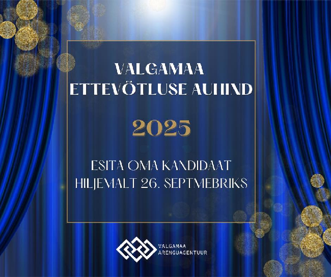 SA Valgamaa Arenguagentuur kuulutab välja konkursi „Valgamaa ettevõtluse auhind 2025", mille eesmärk on tunnustada ettevõtteid ja inimesi, kes oma tegevuse, eeskuju ja panusega on aidanud kaasa Valgamaa positiivsele arengule.