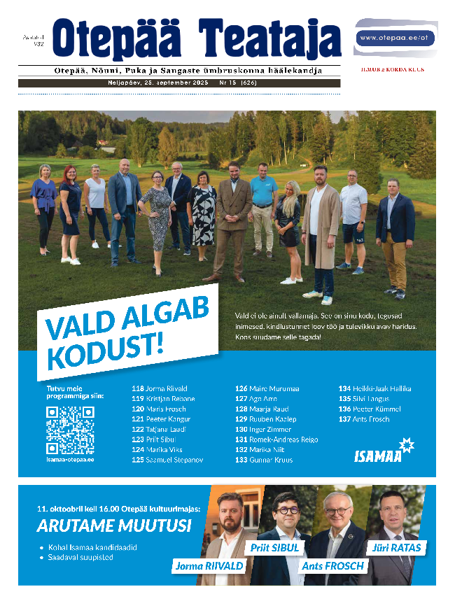 Ilmunud on Otepää valla häälekandja Otepää Teataja